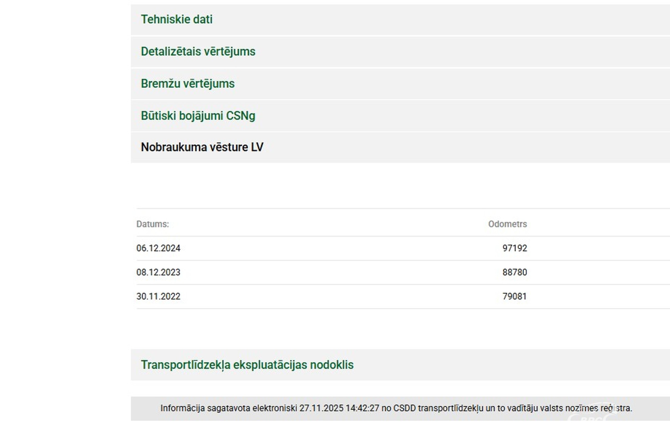 Muu lisavarustus (Elektriski regulējami sēdekļi ar atmiņas funkciju; Panelis ar ādas apdari; Transportlīdzekļa ekspluatācijas nodoklis 237 EUR uz gadu (pilnā apmērā);CO2:211)